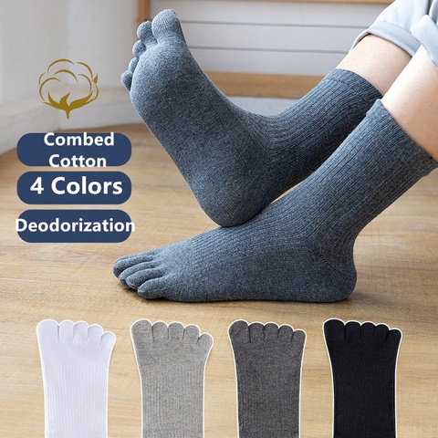 Оптовая продажа, мужские однотонные носки из полиэстера и хлопка с пятью пальцами